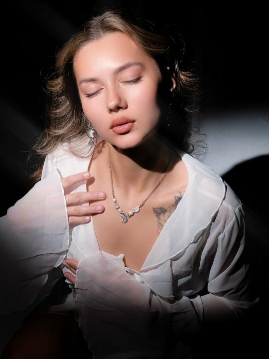 Эта цепочка словно рассказывает истории о любви и мечтах, которые уносят нас в далекое детство, наполненное верой в чудеса. Материалы: натуральный культивированный жемчуг, натуральный горный хрусталь, перламутр, фианит. Фурнитура из латуни и стали покрыта золотом/родием. Длина регулируется, максимальная длина: 45см.