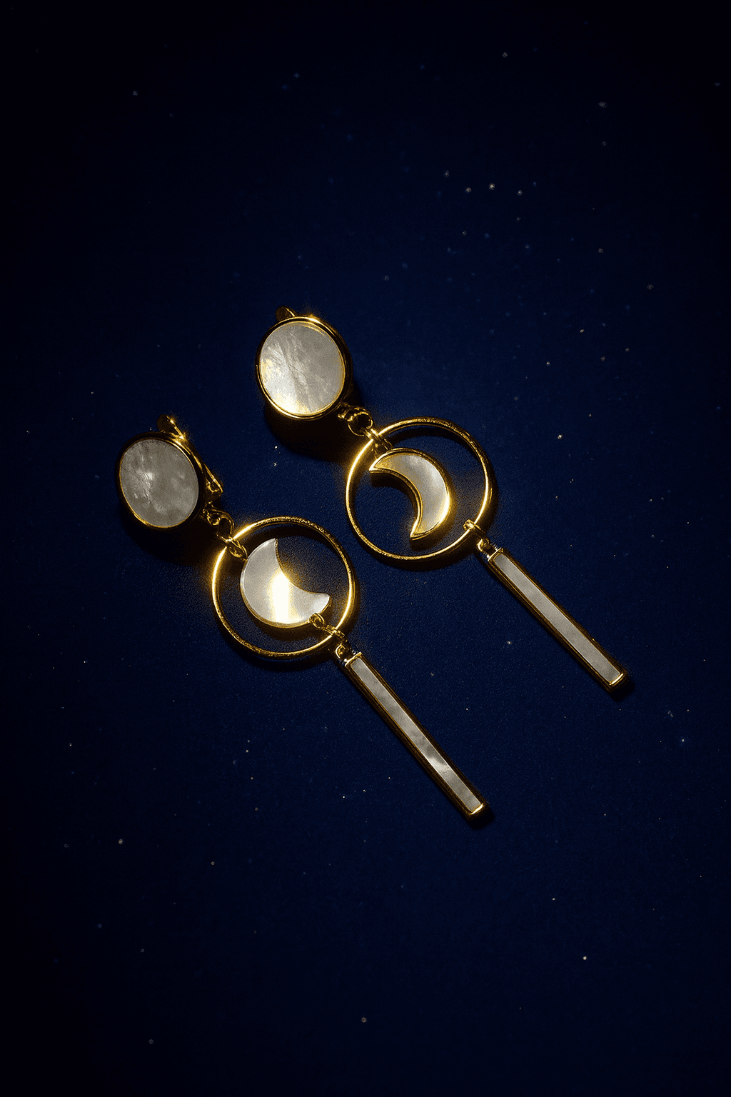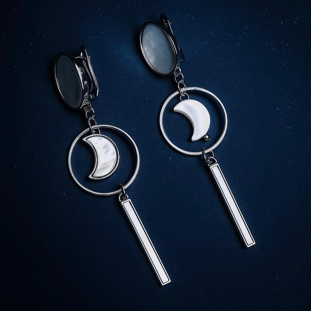 Длинные серьги с символом луны напоминают о том, что человек — отражение его мечтаний и стремлений, и жизнь преподносит нам то, о чем мы думаем. Материалы: перламутр. Фурнитура из латуни покрыта золотом/родием. Длина: 7см.