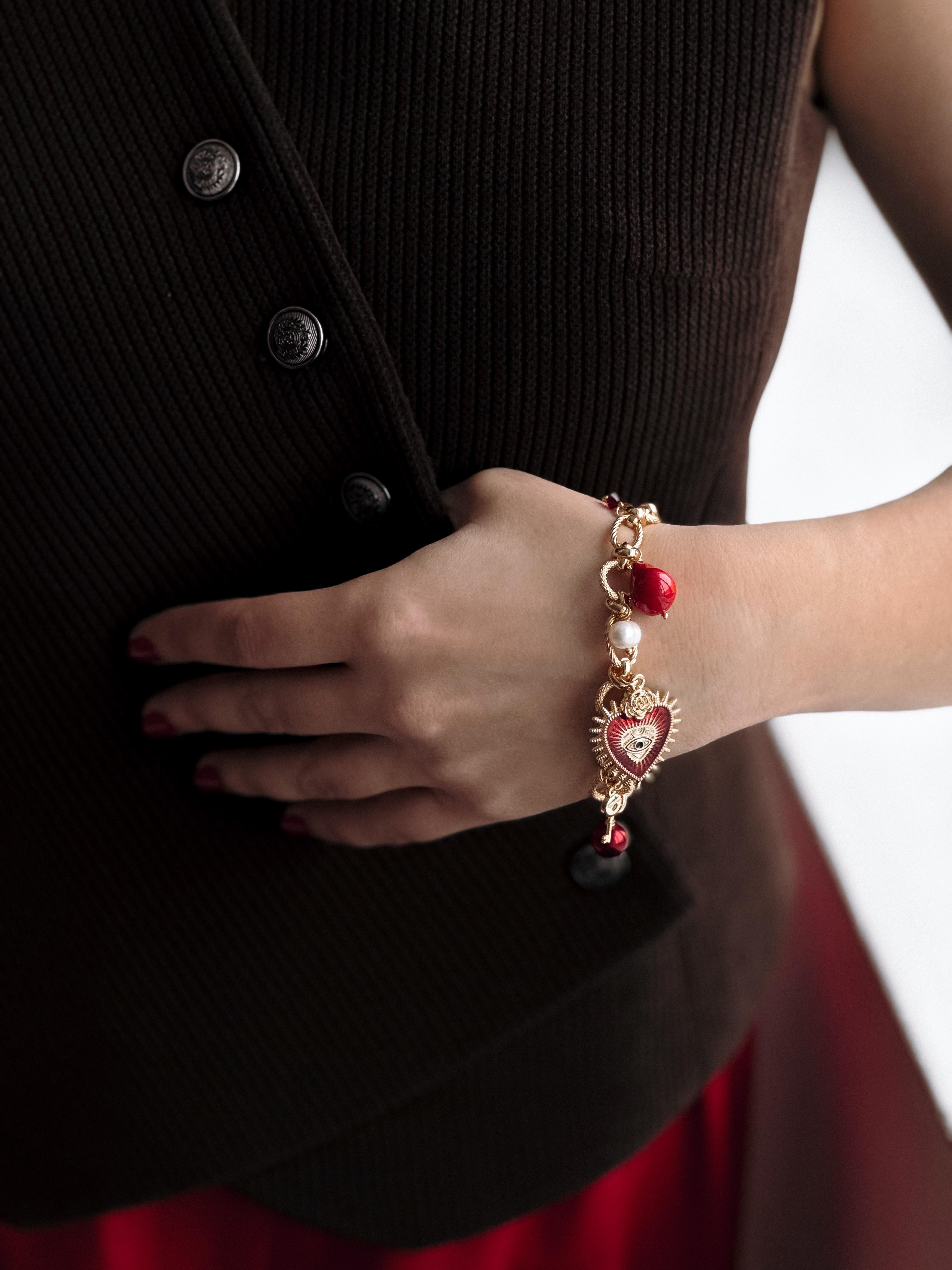 Этот браслет — символ мудрости и опыта. Он станет вашим личным амулетом, который будет хранить важные уроки жизни и вдохновлять на новые открытия. Материалы: натуральный культивированный жемчуг, жемчуг Майорка, кристаллы Swarovski, фианиты. Фурнитура из латуни покрыта золотом. Длина: 20 см.