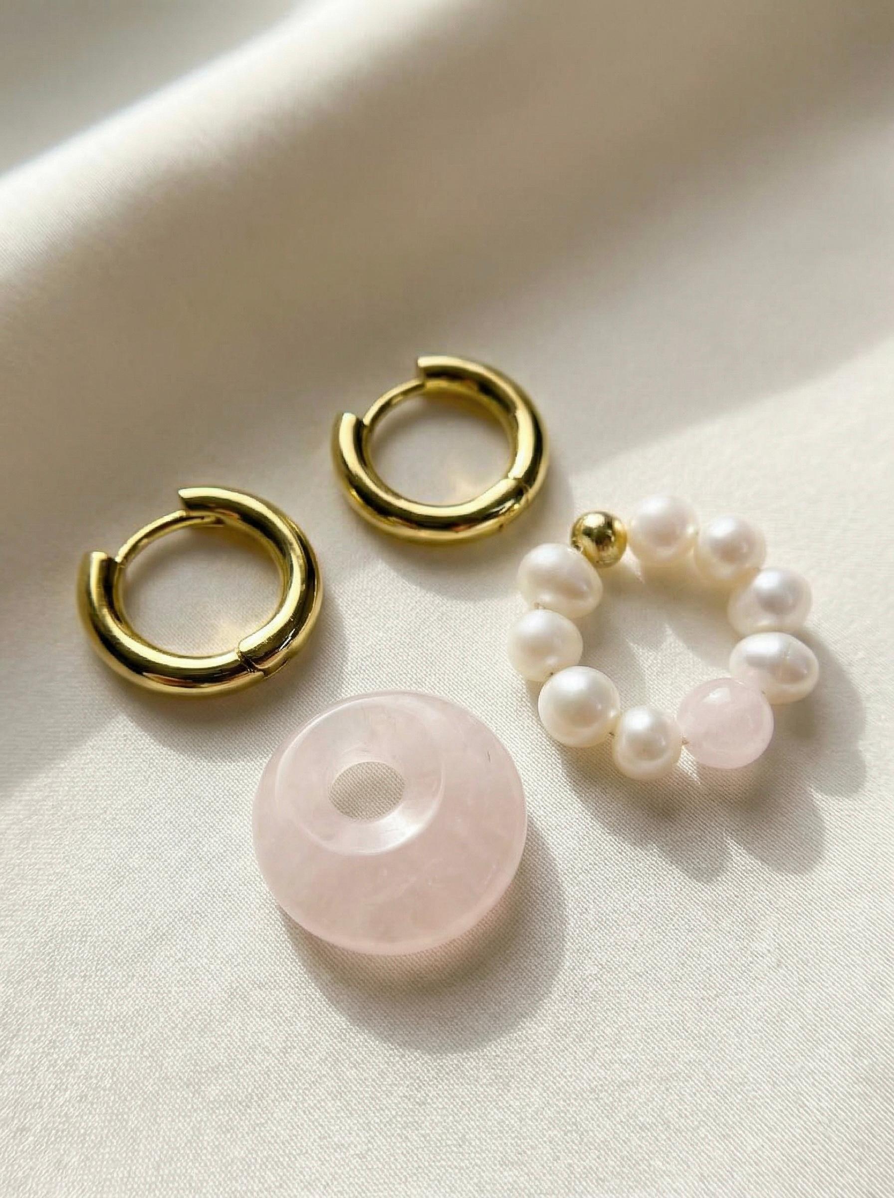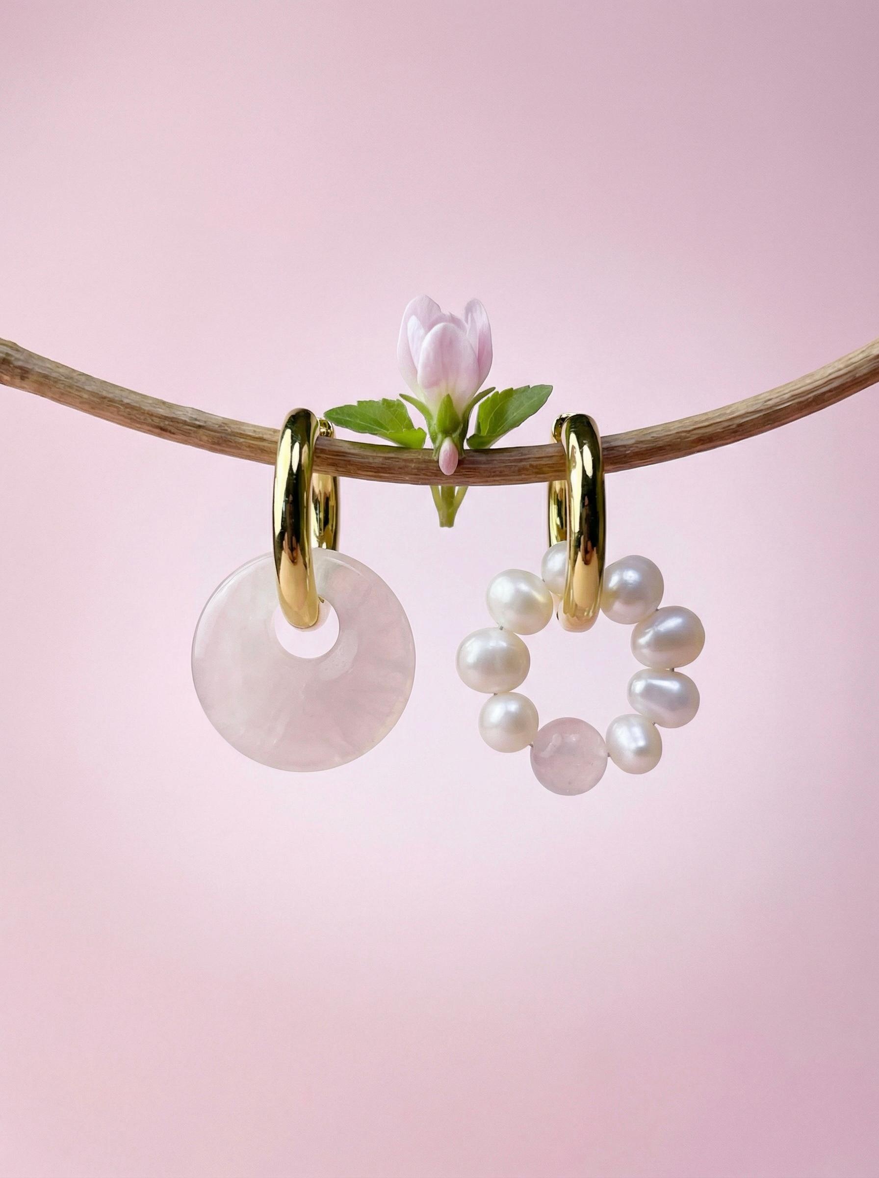 Эти серьги-трансформеры воплощают в себе чистоту и глубину искренних чувств. Их форма и грация делают их идеальным дополнением для тех, кто ценит настоящую любовь и взаимопонимание. Подвески на сережках съемные, что позволяет носить серьги-кольца самостоятельно. Материалы: розовый кварц, натуральный культивированный жемчуг. Фурнитура из латуни покрыта золотом. Длина: 3см.