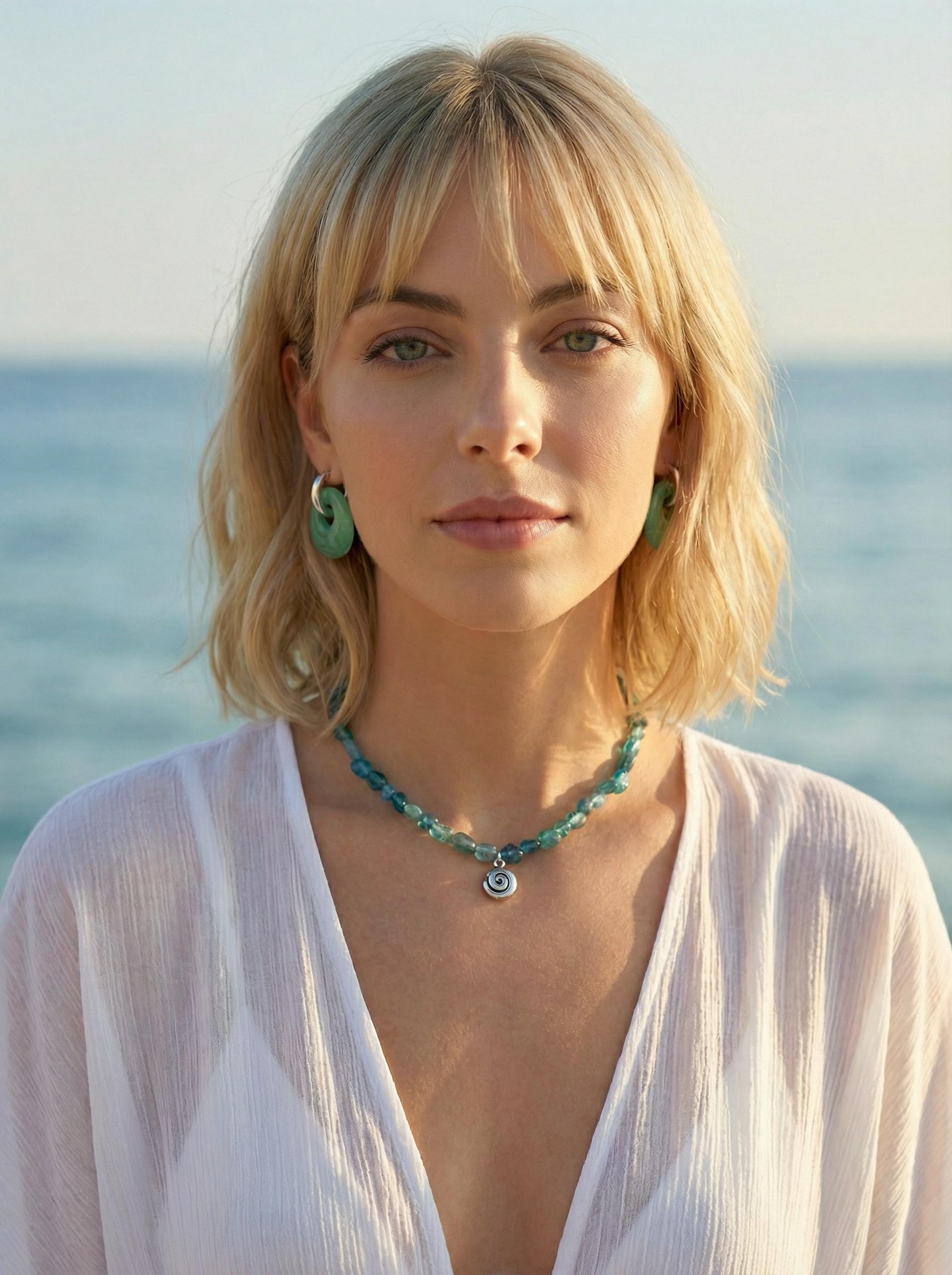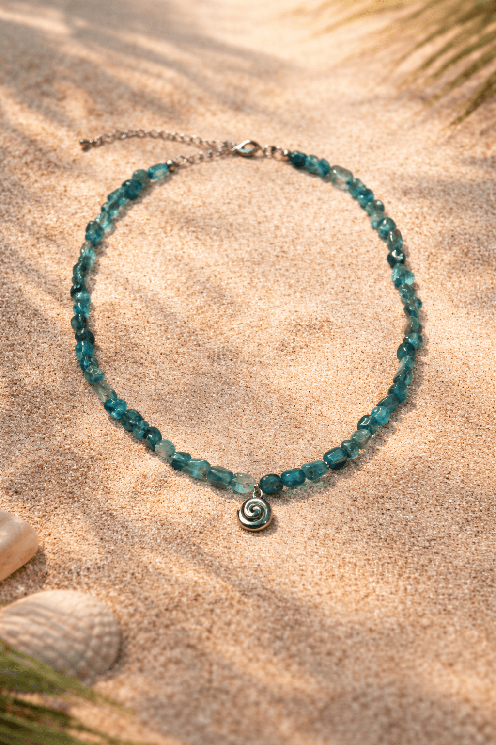 Этот чокер — ваше личное побережье спокойствия. Он напоминает о безмятежных днях, проведенных у моря, и добавит свежести вашему образу. Материалы: натуральный кварц. Фурнитура из латуни покрыта родием. Длина: 41см + удлинитель 5 см.