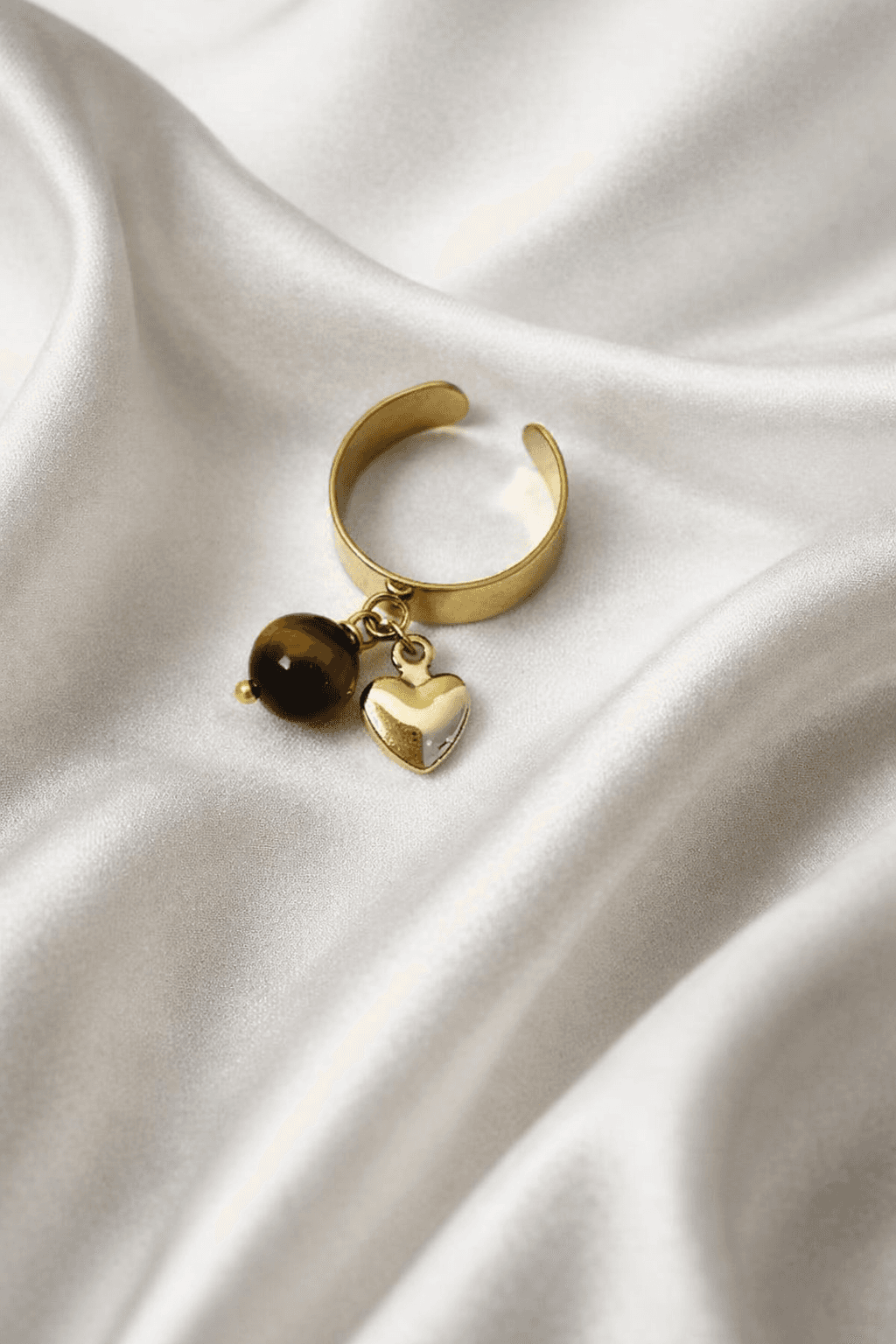 Это кольцо — напоминание вам о том, что любовь и сила идут рука об руку. Тигровый глаз придаёт уверенности в себе, а сердце символизирует теплые чувства, которыми наполнено ваше сердце. Материалы: натуральный тигровый глаз. Фурнитура из латуни и стали покрыта золотом. Размер регулируется.