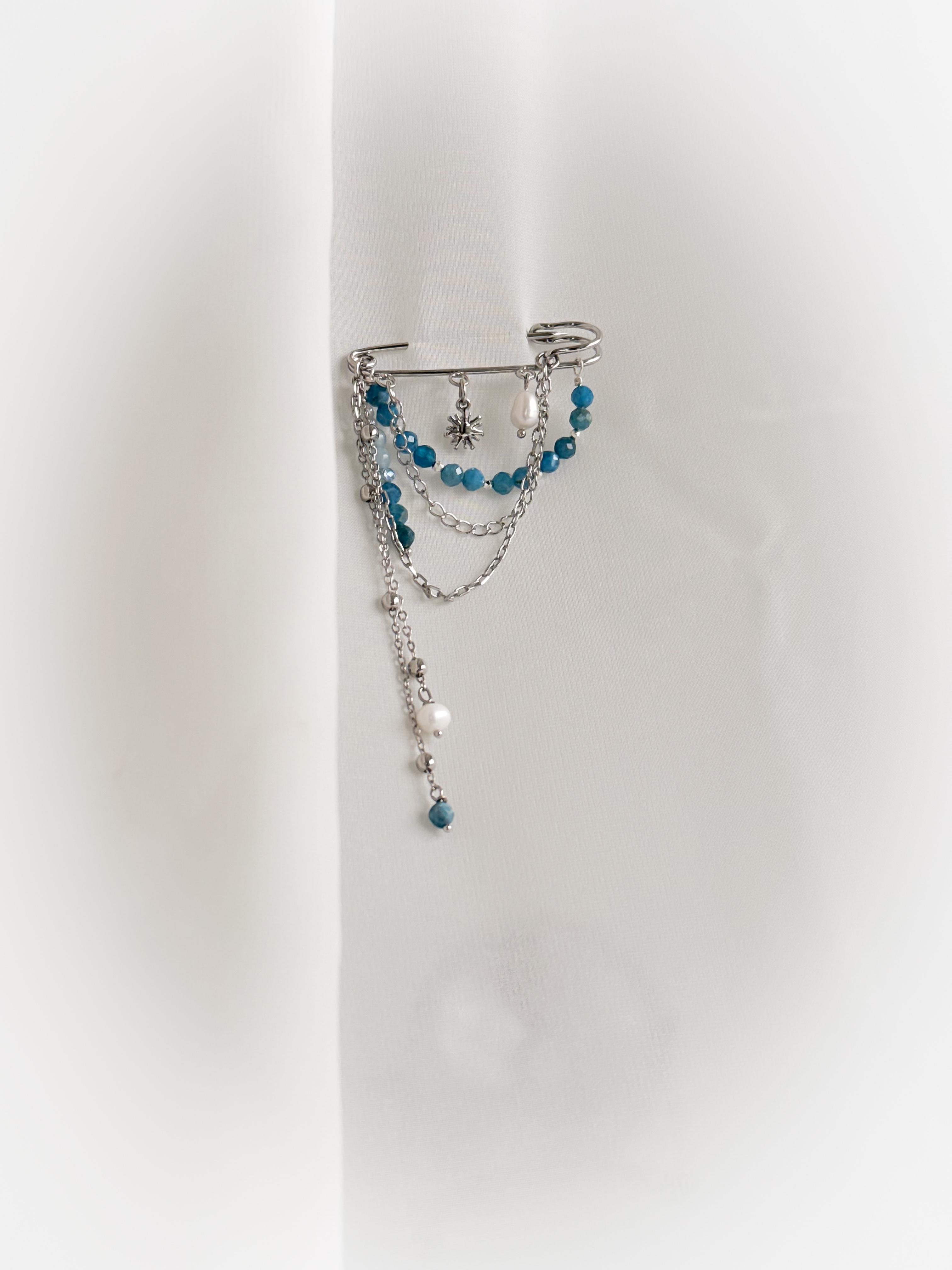 Брошь-булавка воплощает в себе очарование небесных просторов, добавляя актуальные детали и игривость вашему образу. Материалы: натуральные апатит и аквамарин, натуральный культивированный жемчуг, ювелирное стекло, гематит. Фурнитура из латуни покрыта родием. Размеры: 5х9,5см.