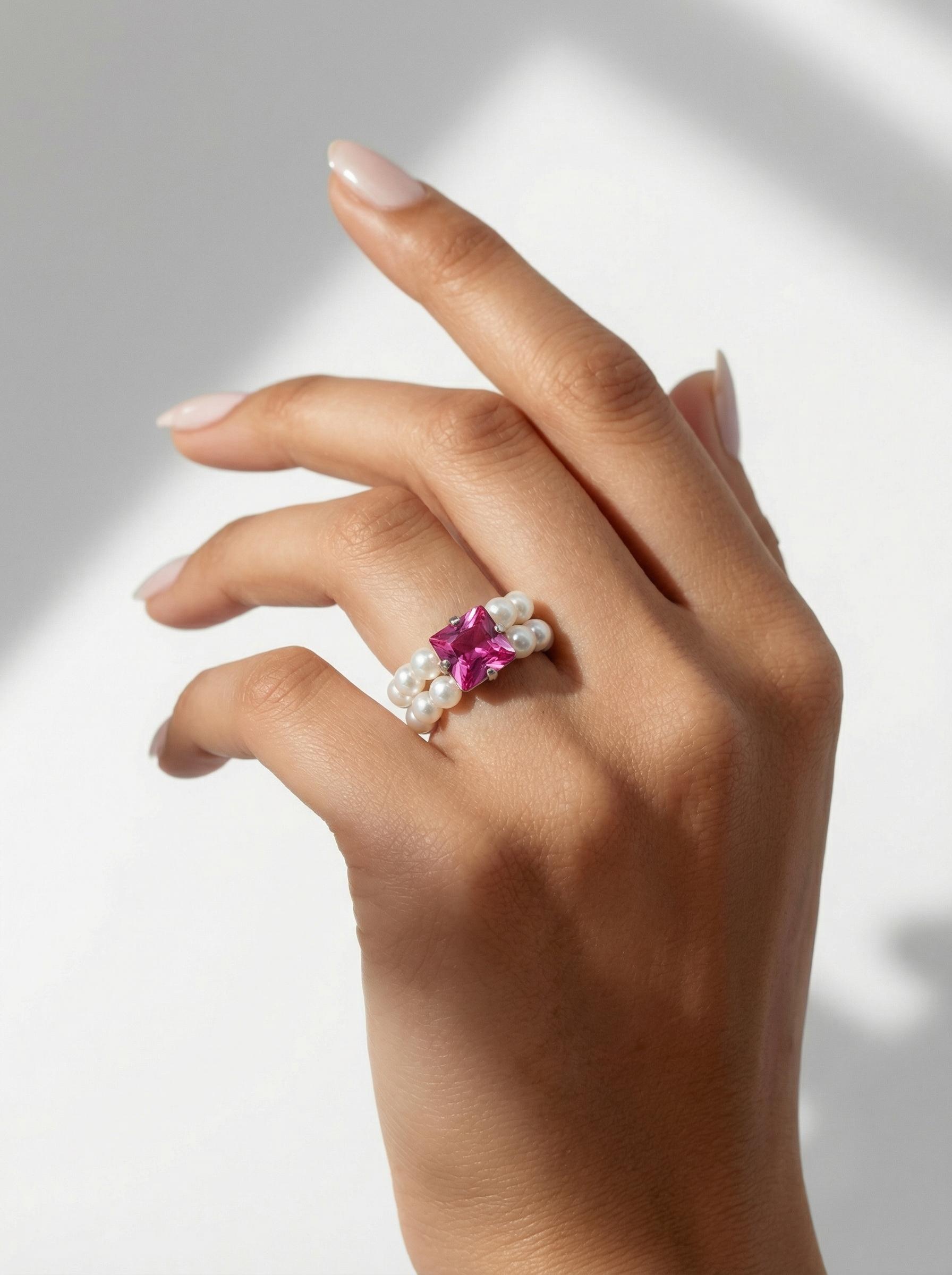 Это кольцо, словно маленький талисман, напоминающий о ваших мечтах. Оно добавит образу романтичное настроение и подчеркнет вашу женственность. Материалы: жемчуг Майорка, кристалл Swarovski. Фурнитура из латуни покрыта родием. Кольцо на резинке.