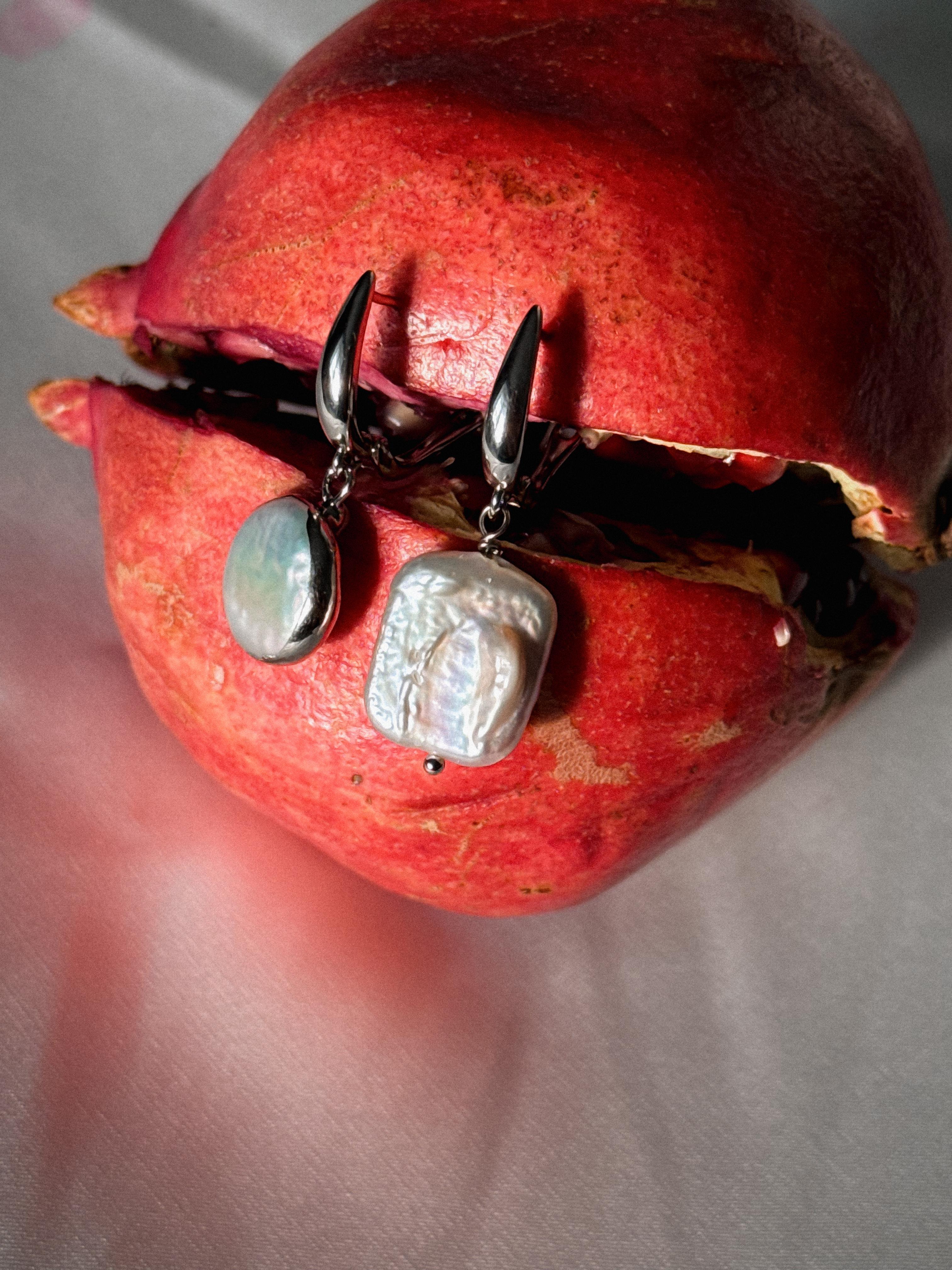 Эти серьги олицетворяют заботу и поддержку, которые женщина может дать окружающим. Жемчуг говорит о чистоте и понимании, а легкая асимметрия подчеркивает уникальность каждого момента. Материалы: натуральный культивированный жемчуг. Фурнитура из латуни покрыта родием. Длина: 4 см.