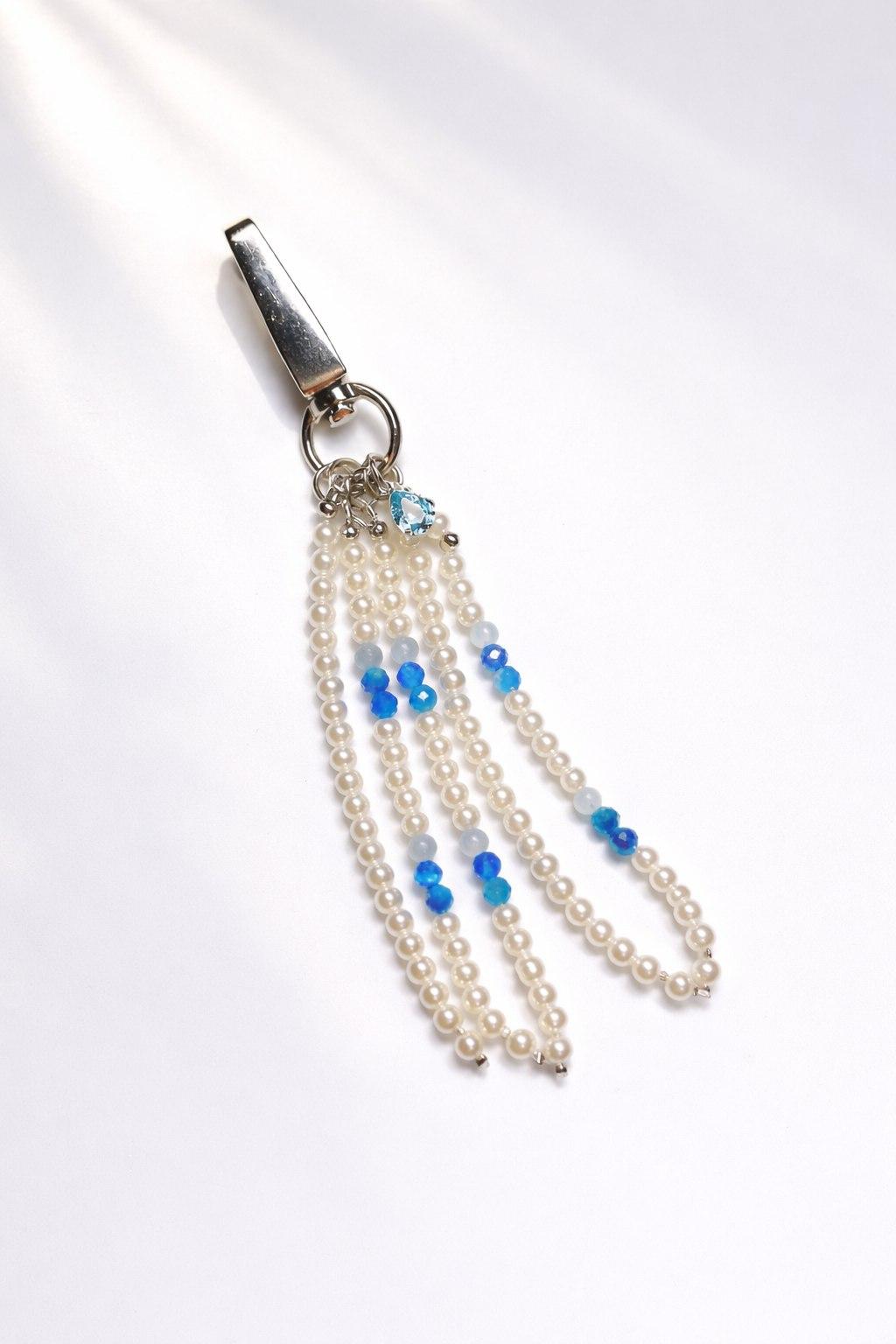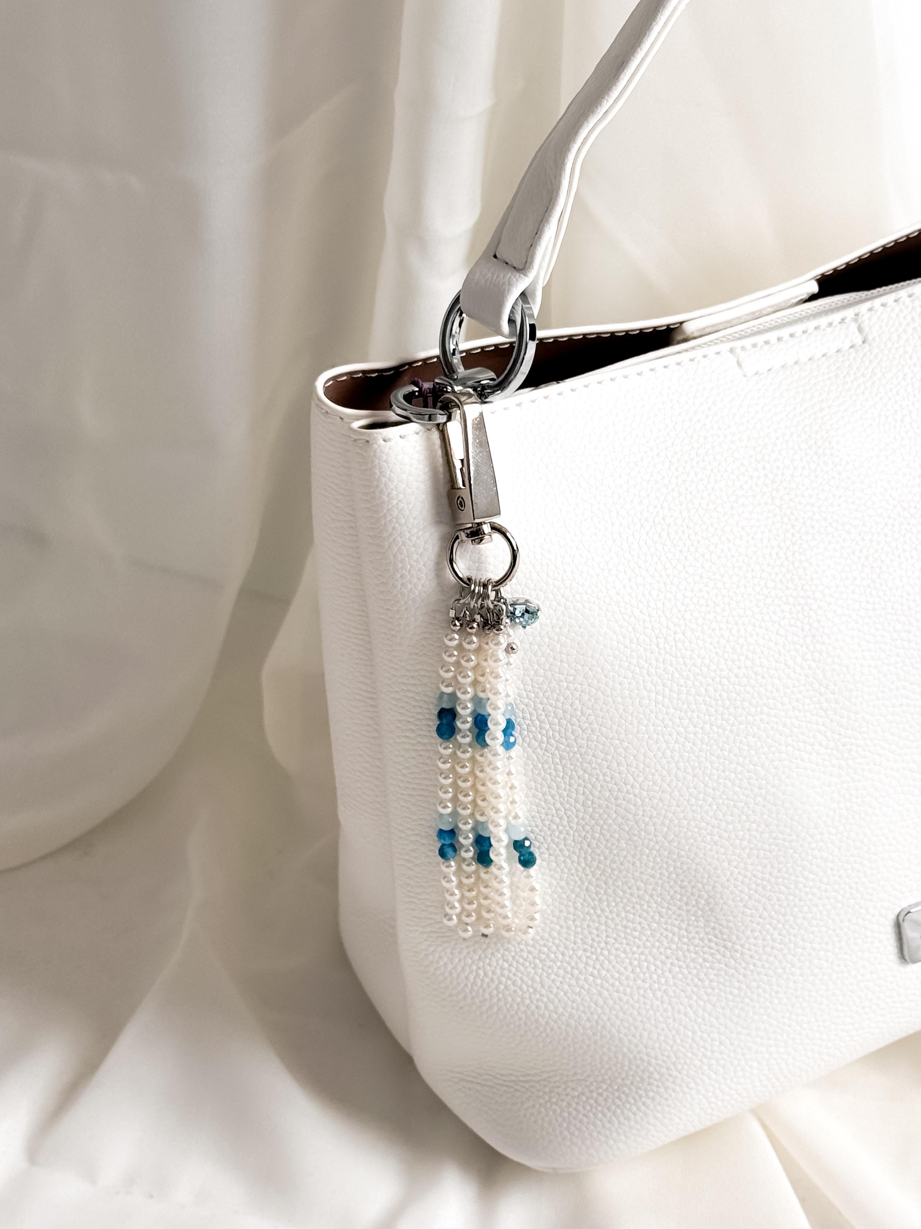 Брелок для сумки или брюк добавляет яркие акценты и подчеркивает вашу индивидуальность в повседневной жизни. Материалы: натуральные апатит и аквамарин, жемчуг Майорка. Фурнитура из латуни покрыта родием. Длина: 14см.