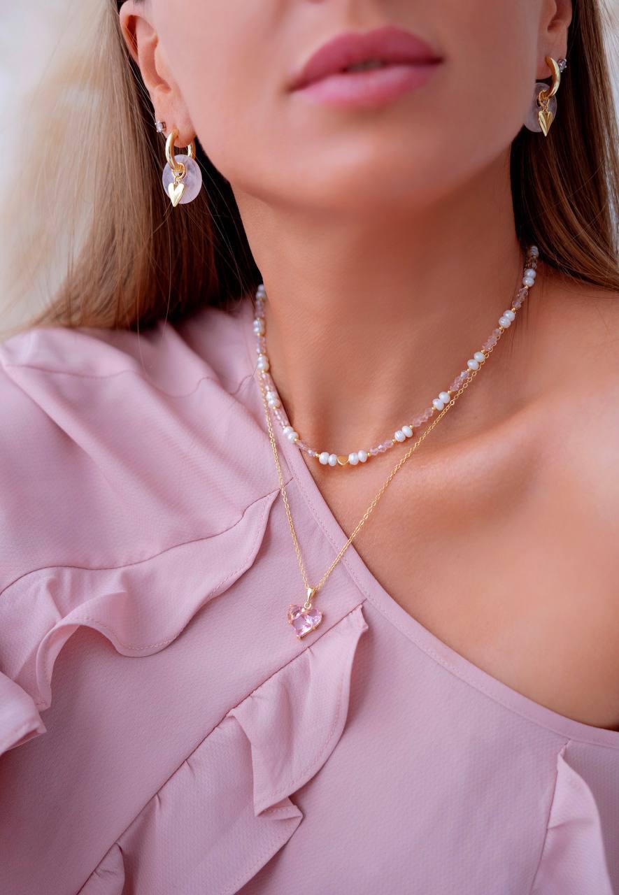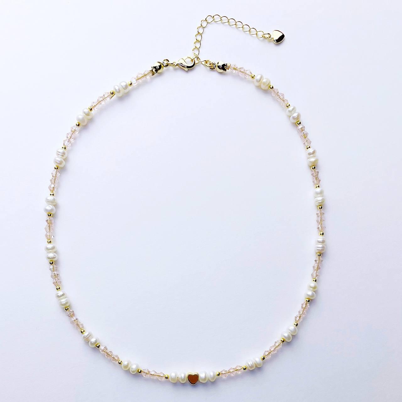 Этот чокер словно воплощает в себе мечты о любви и счастье. Он добавит вашему образу лёгкости и игривости, напоминая о самых сладких моментах. Материалы: натуральный жемчуг, ювелирное стекло. Фурнитура из латуни покрыта золотом. Длина: 39см + удлинитель 5см.