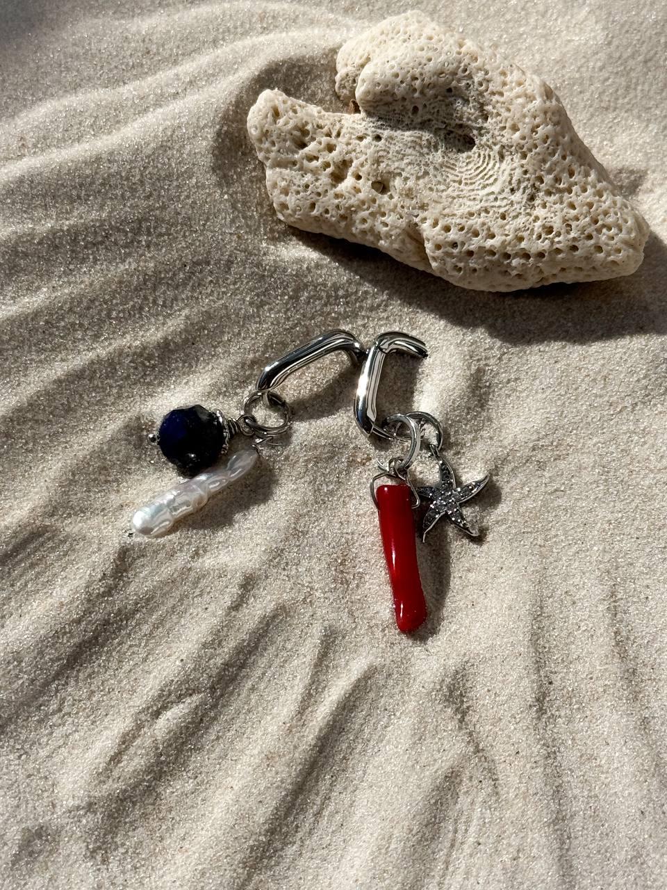 Эти серьги-трансформеры позволяют менять стиль в зависимости от настроения. Они напоминают о том, что ваши таланты могут принимать разные формы. Материалы: натуральный культивированный жемчуг, натуральные лазурит и коралл, фианиты. Фурнитура из латуни покрыта родием. Длина: 4см.