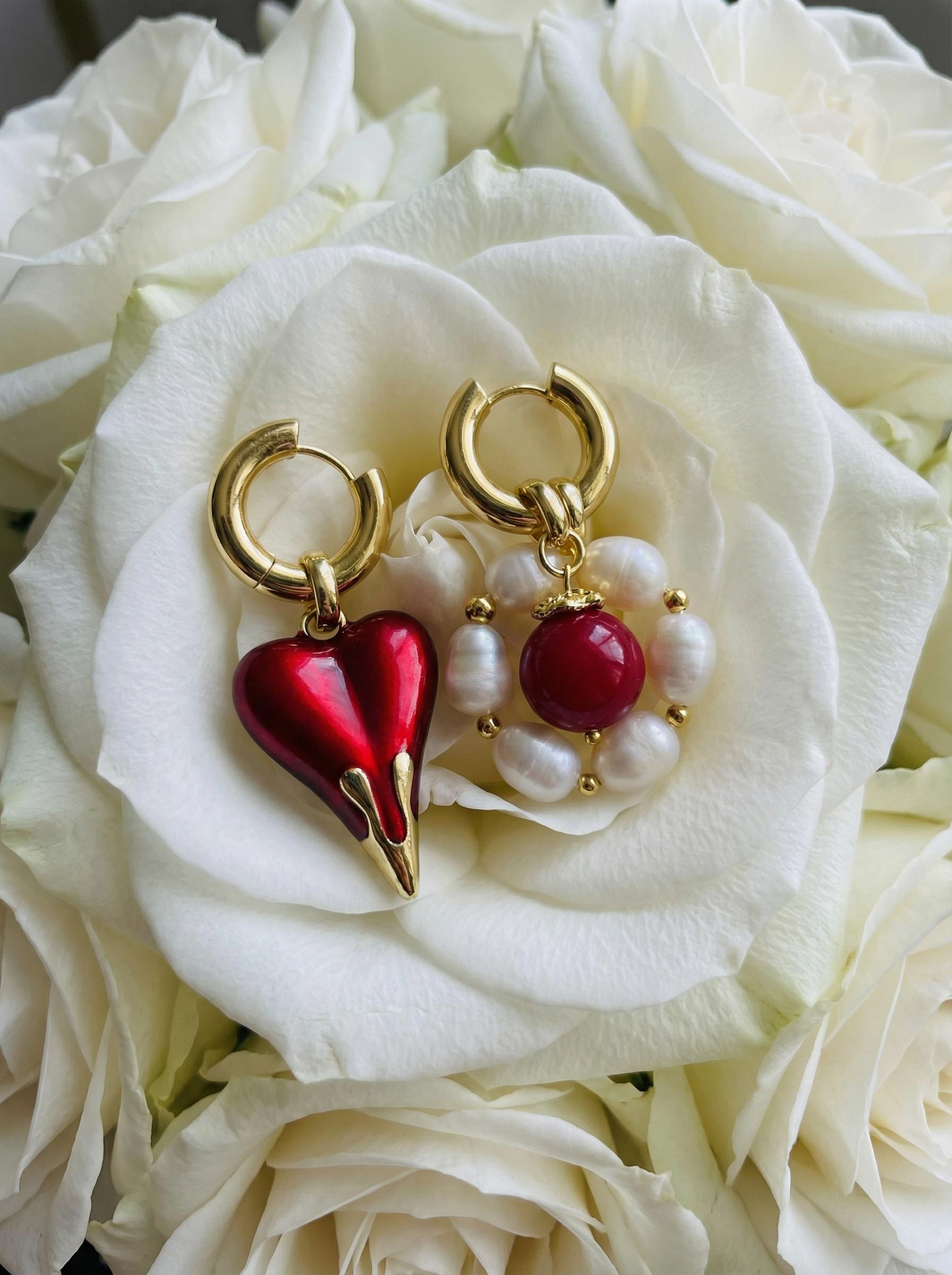 Эти серьги-трансформеры символизируют пылкую любовь, рожденную в глубине души, и тот яркий мир, который открывается влюбленным. Материалы: натуральный культивированный жемчуг, эмаль, ювелирное стекло. Фурнитура из латуни покрыта золотом. Длина: 5см.