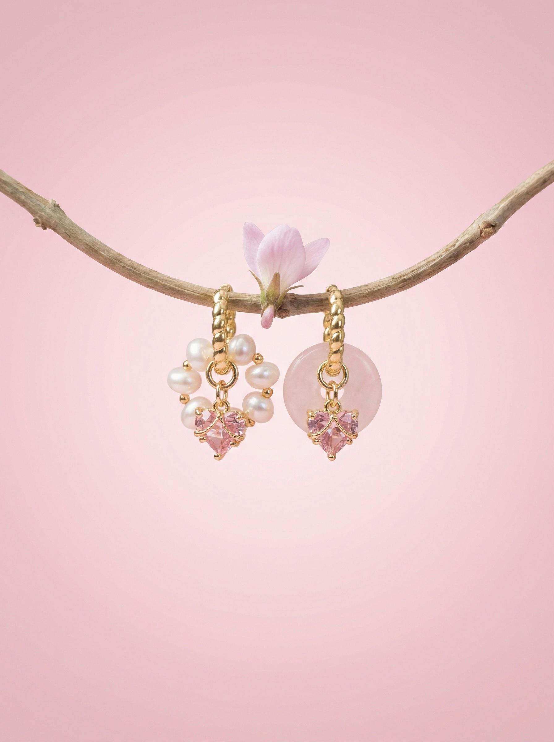 Серьги-трансформеры «Влюбленность» — это яркий символ первых чувств и трепетных эмоций. Их блеск и форма напоминают о том волнительном моменте, когда сердце замирает от нежности. Подвески на сережках съемные, что позволяет носить серьги-кольца самостоятельно, а также комбинировать подвески между собой, создавая разные сережки из одной пары. Материалы: розовый кварц, натуральный культивированный жемчуг, ювелирные кристаллы. Фурнитура из латуни покрыта золотом. Длина: 3см.
