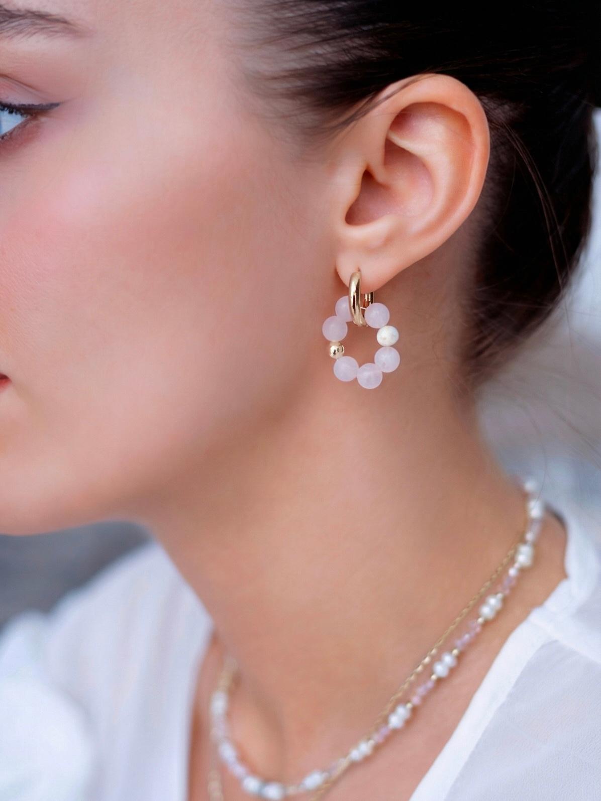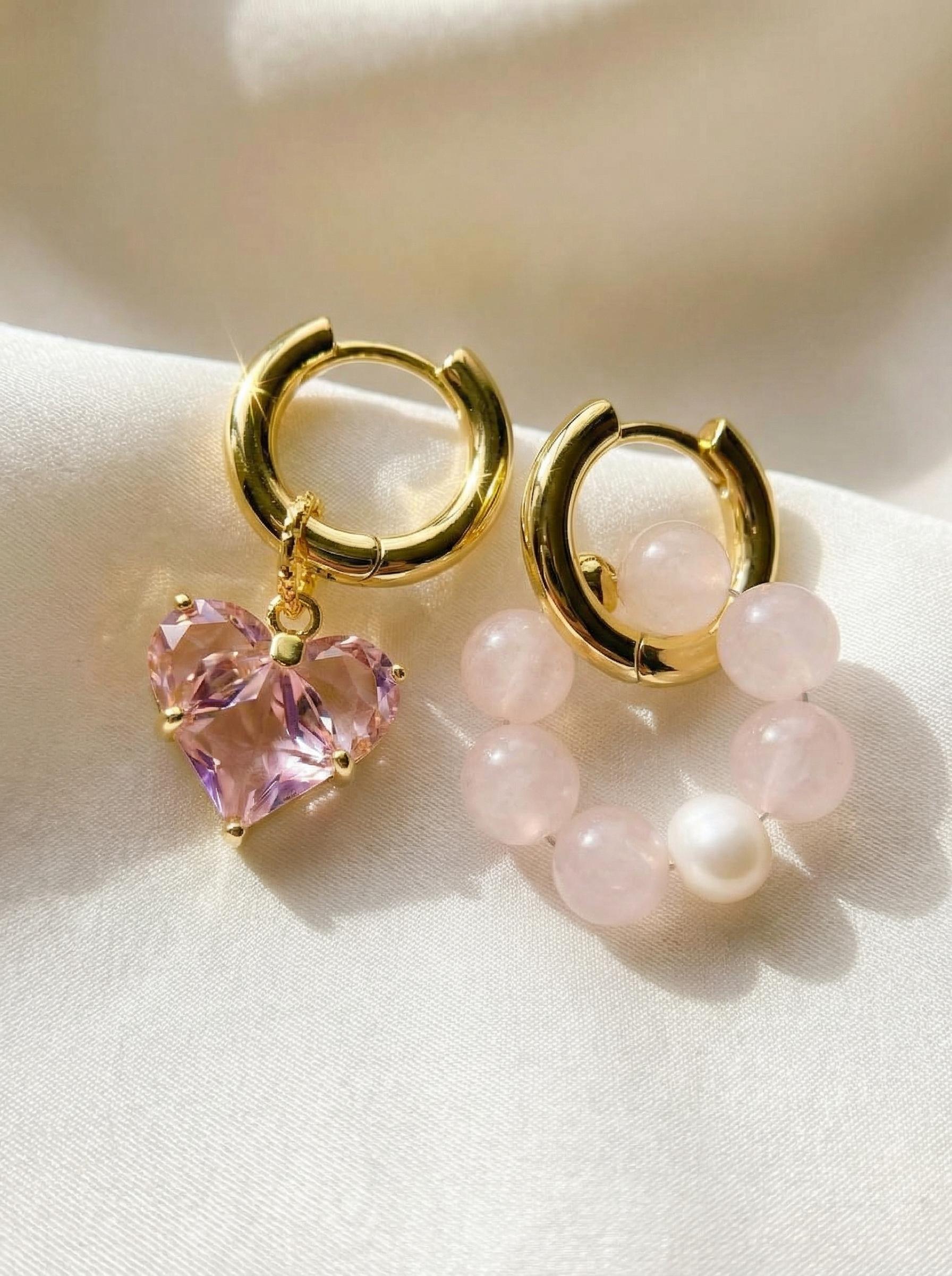 Серьги-трансформеры «Влюбленность» — это яркий символ первых чувств и трепетных эмоций. Их блеск и форма напоминают о том волнительном моменте, когда сердце замирает от нежности. Подвески на сережках съемные, что позволяет носить серьги-кольца самостоятельно. Материалы: розовый кварц, натуральный культивированный жемчуг, ювелирный кристалл. Фурнитура из латуни покрыта золотом. Длина: 3см.