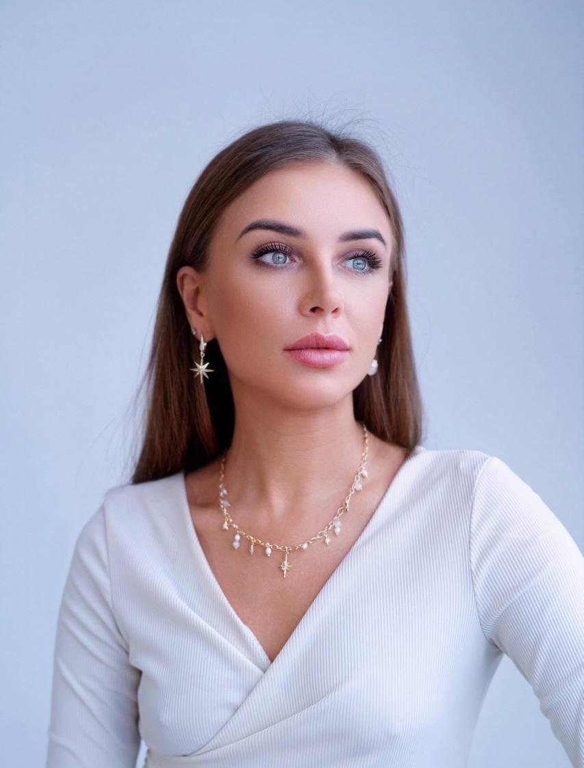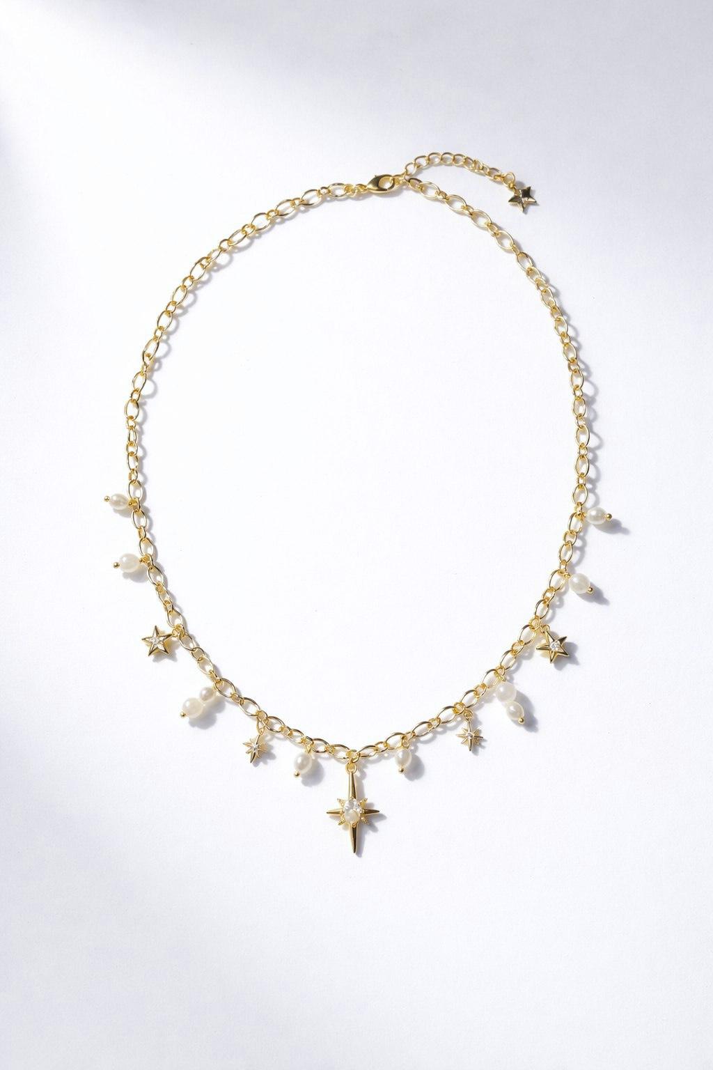 Колье «Звездное небо» — это воплощение бескрайних возможностей. Искрящиеся элементы напоминают о миллионах звезд, которые ведут вас к вашим самым заветным желаниям. Материалы: лунный камень, натуральный культивированный жемчуг, фианиты. Фурнитура из латуни покрыта золотом. Длина:45см + удлинитель 5см.